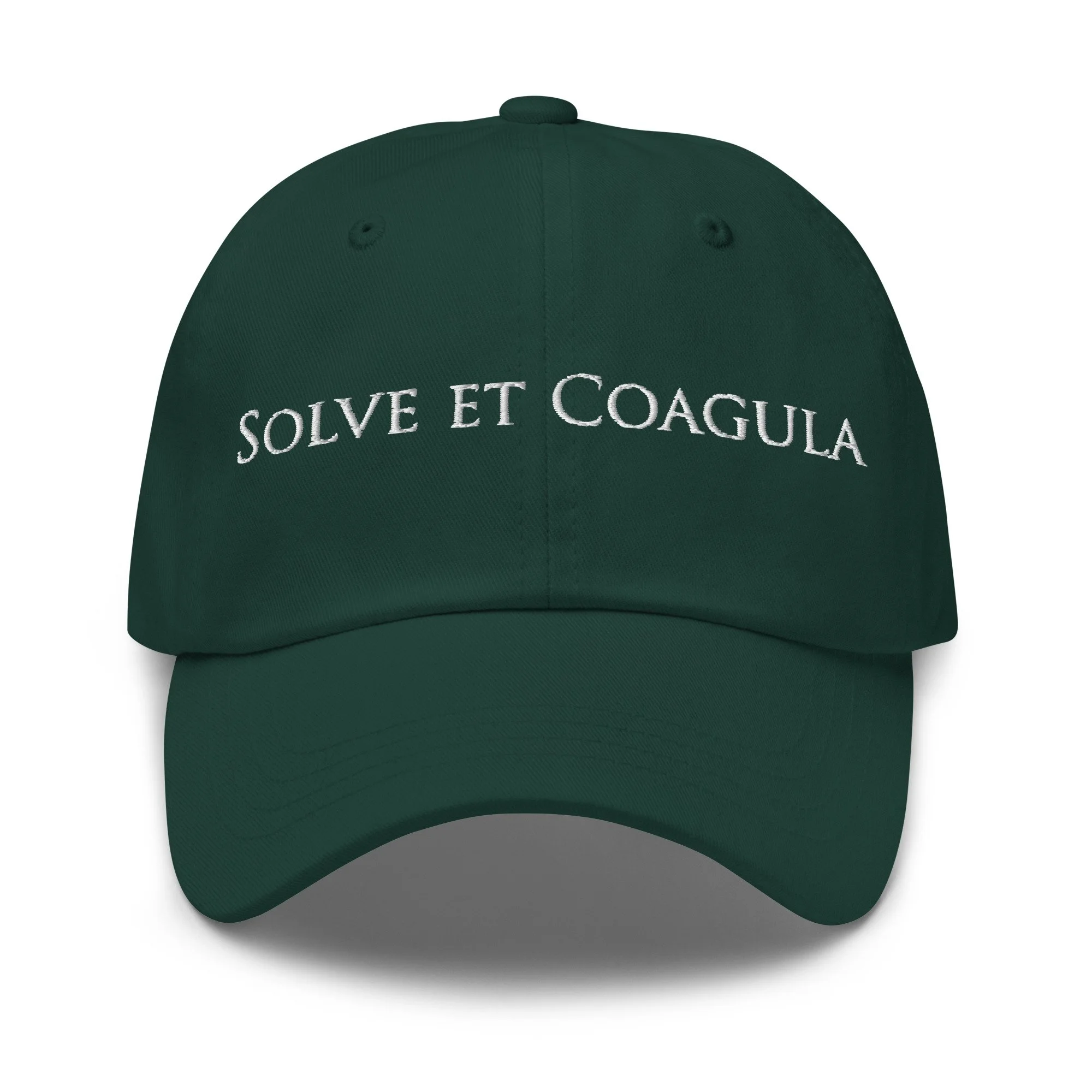 Store › Solve et Coagula Cap Image 1 of 18 Image 2 of 18 Image 3 of 18 Image 4 of 18 Image 5 of 18 Image 6 of 18 Image 7 of 18 Image 8 of 18 Image 9 of 18 Image 10 of 18 Image 11 of 18 Image 12 of 18 Image 13 of 18 Image 14 of 18 Image 15 of 18 Image 16 of 18 Image 17 of 18 Image 18 of 18 Solve et Coagula Cap $42.50 Dad hats aren't just for dads. This one's got a low profile with an adjustable strap and curved visor. • 100% chino cotton twill • Green Camo color is 35% chino cotton twill, 65% polyester • Unstructured, 6-panel, low-profile • 6 embroidered eyelets • 3 ⅛” (7.6 cm) crown • Adjustable strap with antique buckle • Blank product sourced from Vietnam or Bangladesh Color: Black Cranberry Spruce Purchase Added! Dad hats aren't just for dads. This one's got a low profile with an adjustable strap and curved visor. • 100% chino cotton twill • Green Camo color is 35% chino cotton twill, 65% polyester • Unstructured, 6-panel, low-profile • 6 embroidered eyelets • 3 ⅛” (7.6 cm) crown • Adjustable strap with antique buckle • Blank product sourced from Vietnam or Bangladesh
